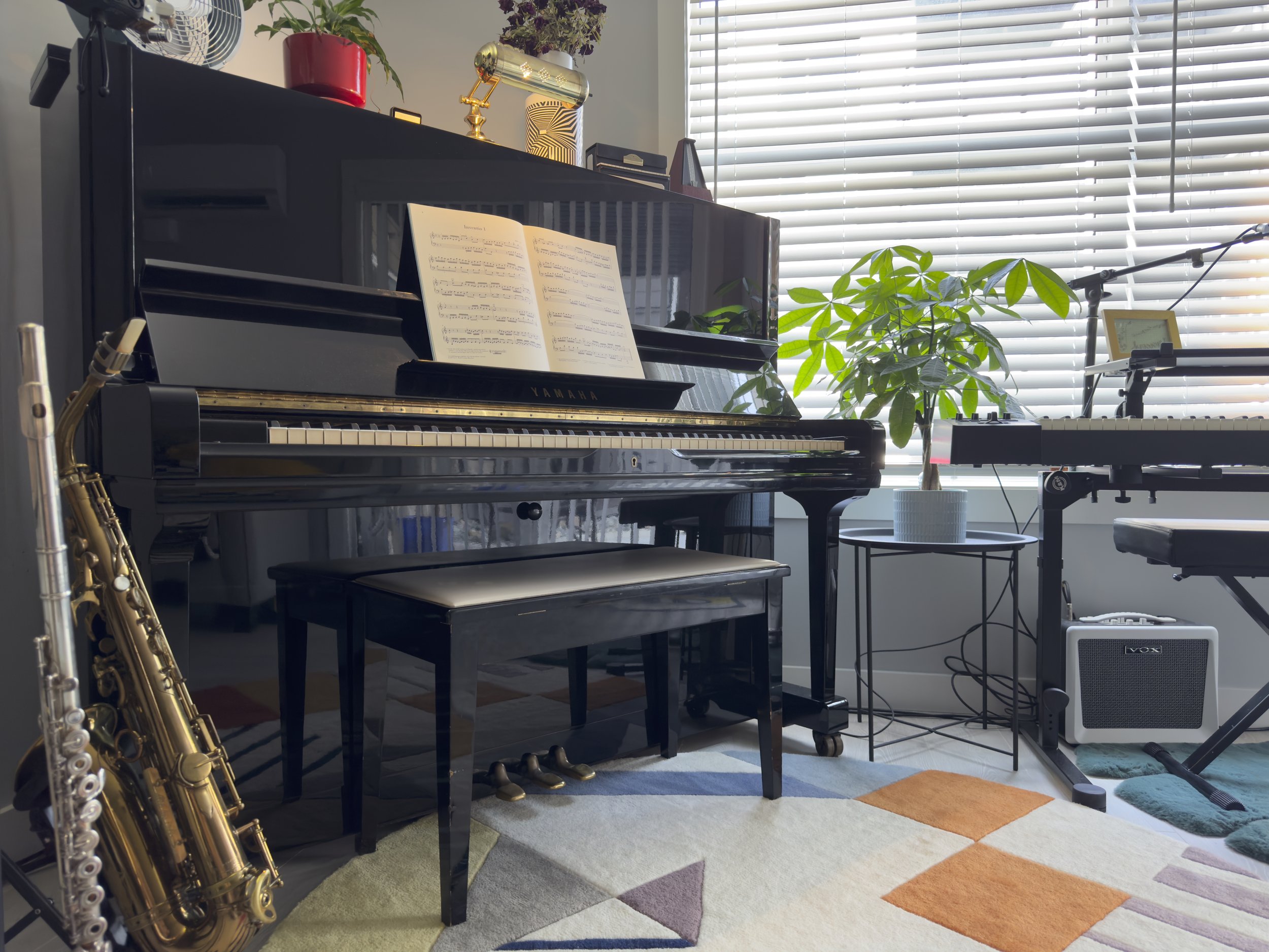 Lessons take place in a comfortable, welcoming studio space. The atmosphere is relaxed and encouraging, helping students feel confident as they develop their musicianship. Online students receive clear camera angles, shared lesson notes, and digital resources to support effective learning from home.